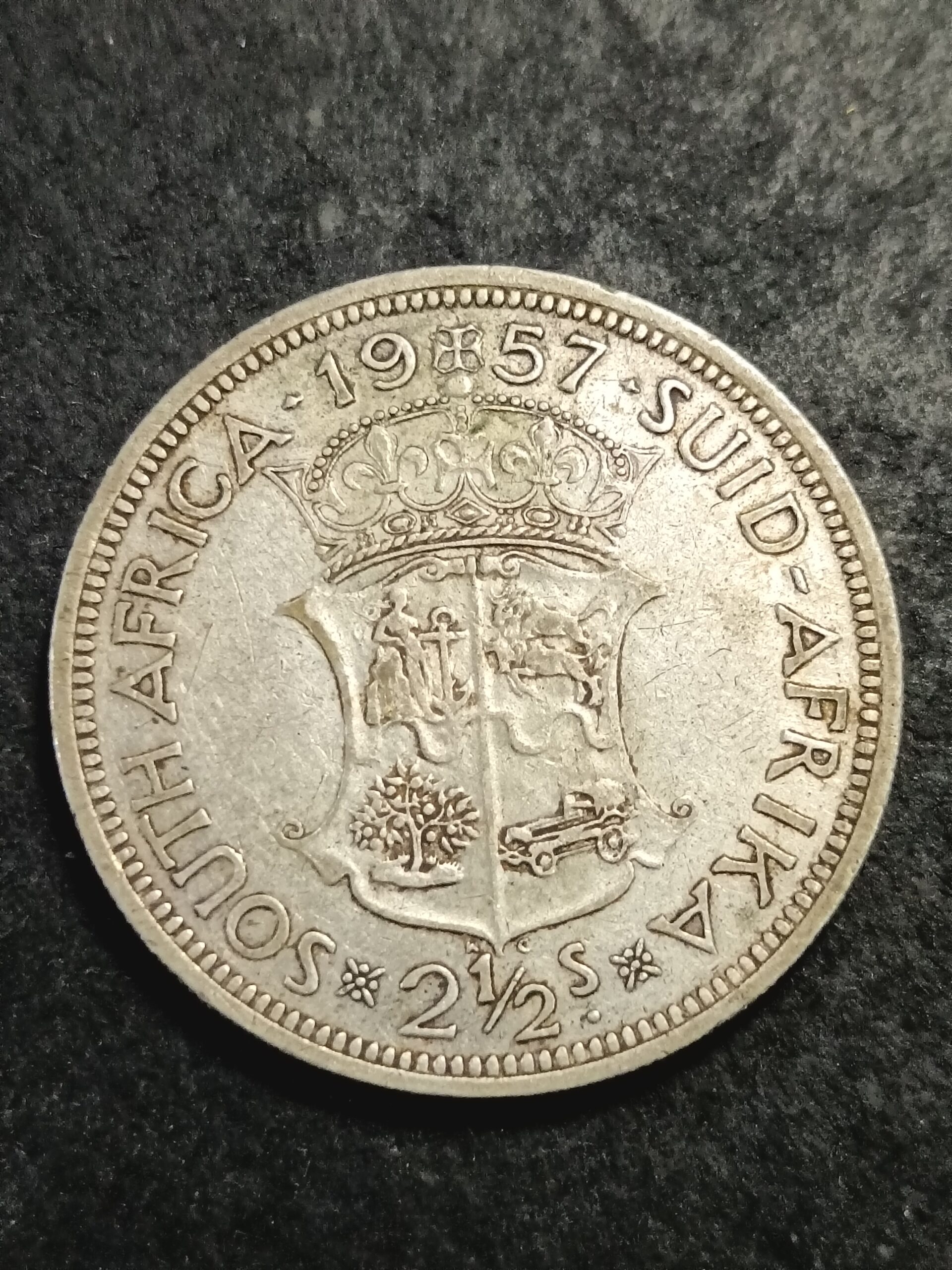 Silver 1957 2 1/2 shillings. See photos for details and condition