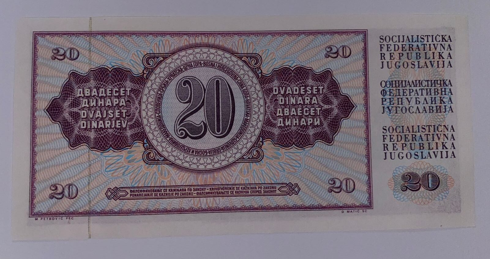 Lot 76 – Jugoslavia 20 Dinara