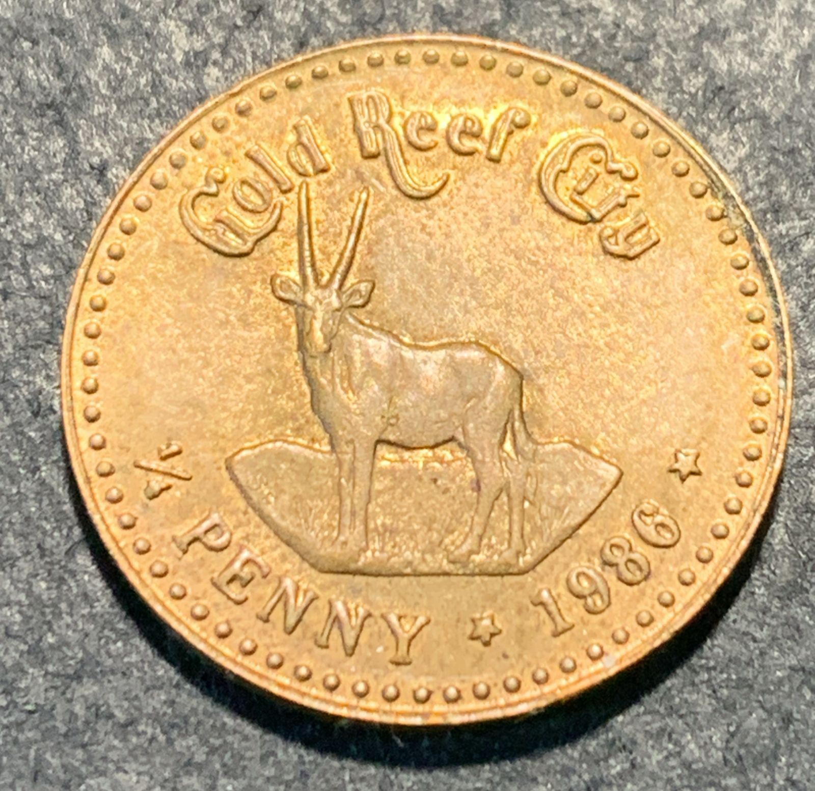 Gold Reef City 1986 1/4 d token. See photos for details and condition.
