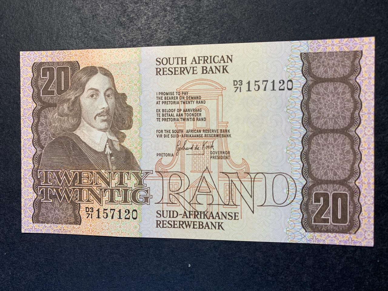 Gerhard de Kock R20 from 1984. Cat value is R200. See photos for details and condition.